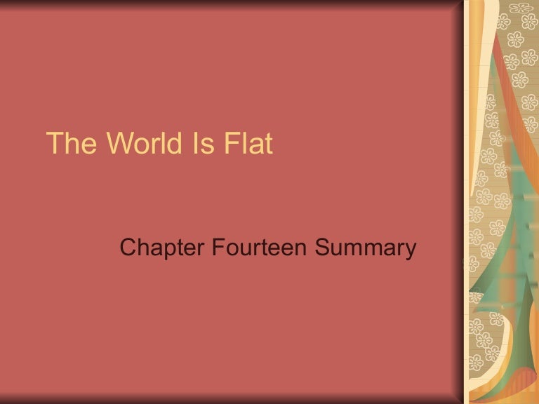 Freidman moves on the world is flat essay use Asian countries like, Japan, China and India as examples to illustrate his point about room created for everyone to progress. However, Friedman attributes this opportunity to what he calls world flatteners. Friedman, Friedman tries to show that, these technological advancement which are as a result of globalization are capable of also causing disasters if in the wrong hands and this fact has changed the thinking of many nations thus creating room for anybody to compete and gain global knowledge.